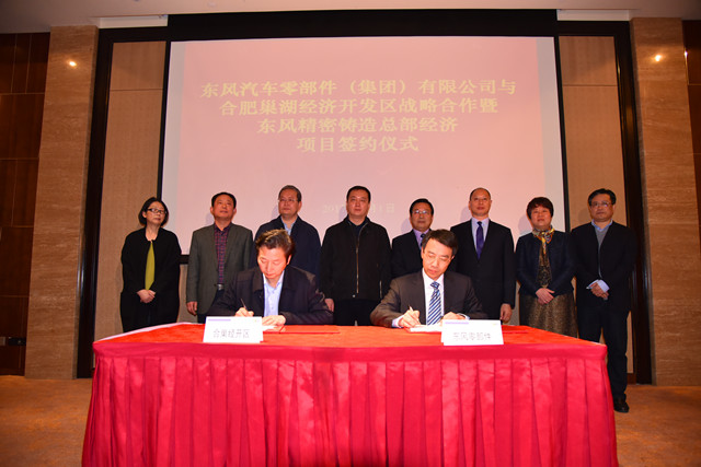 簽約儀式上,合巢經濟開發區黨工委委員、管委會副主任王時年及東風汽車零部件(集團)有限公司總經理陳興林分別致辭。